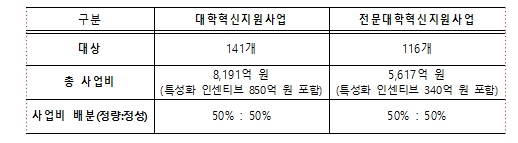 - 대학의 자율적 교육혁신에 기반한 미래 인재 양성의 안정적 지원